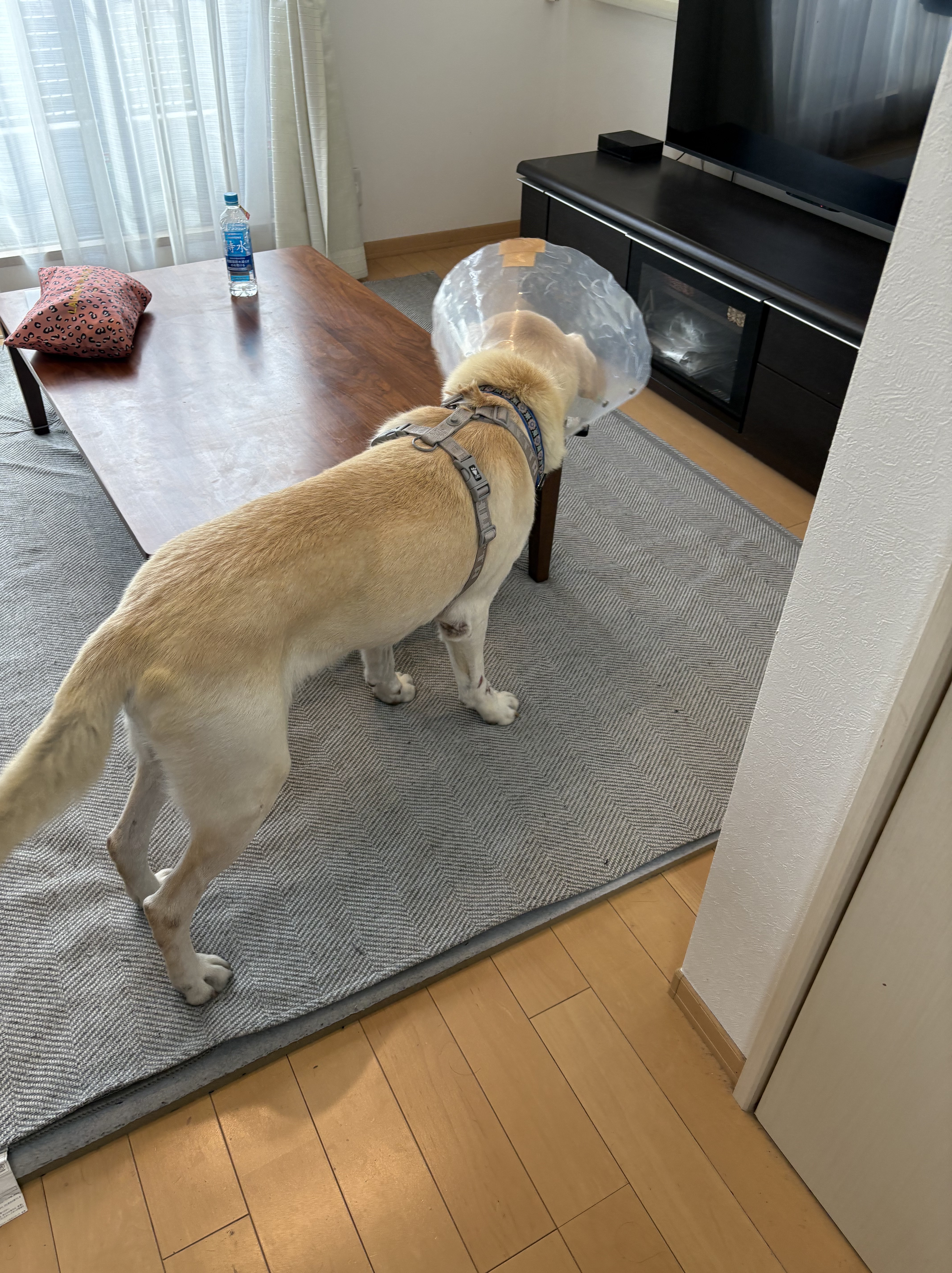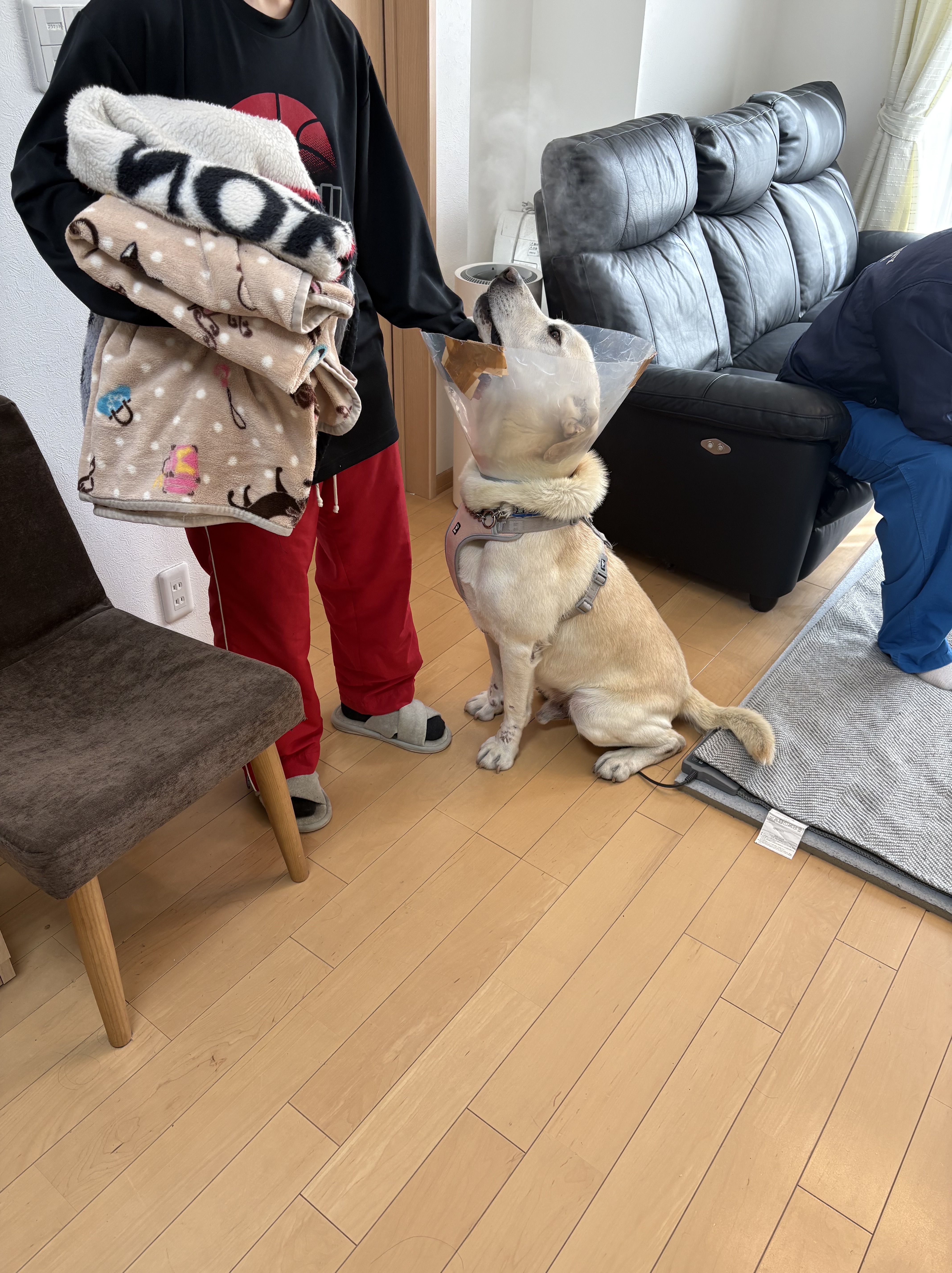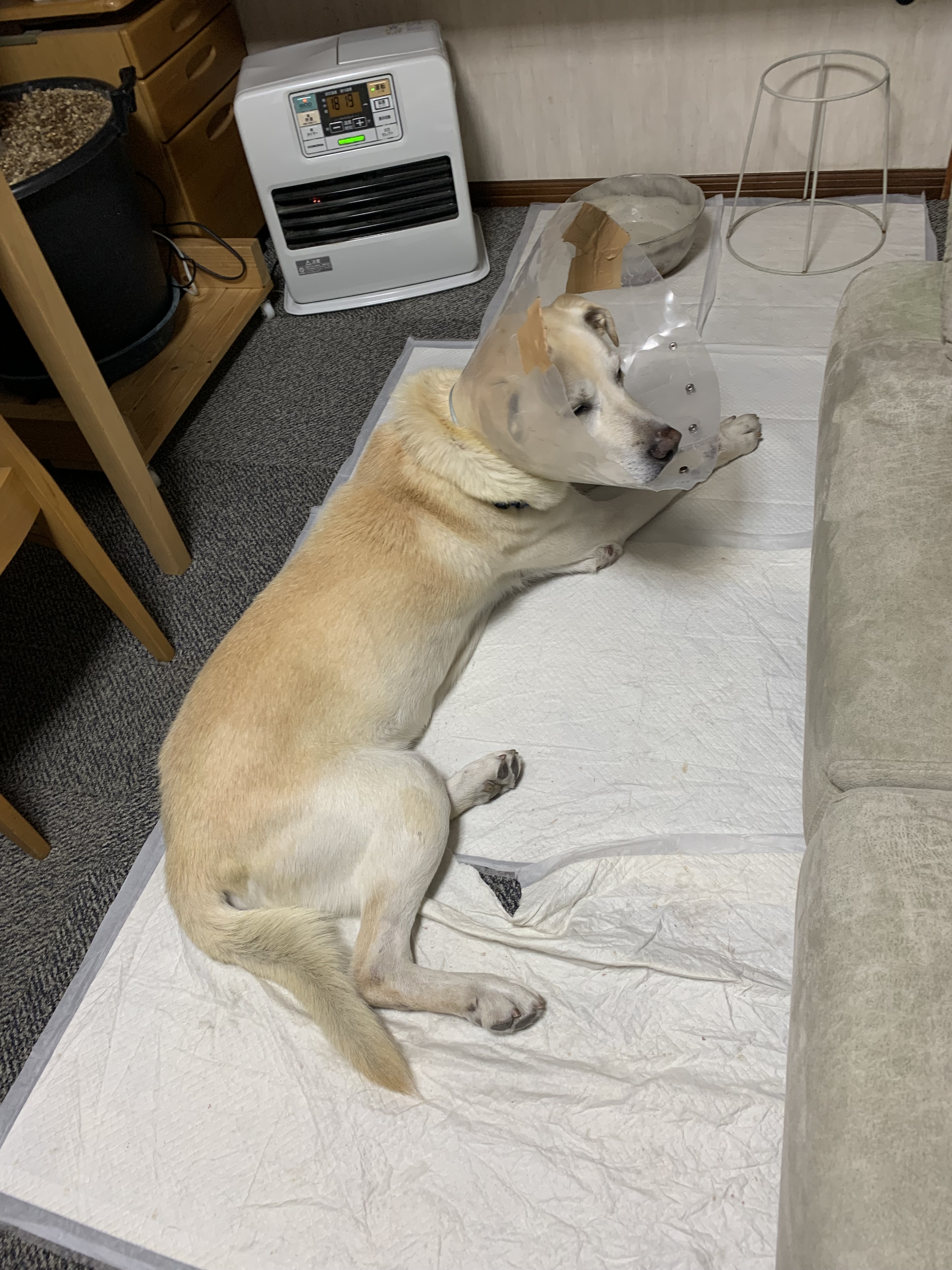 車中でエリカラを外してたら 右前足を舐め出して また出血