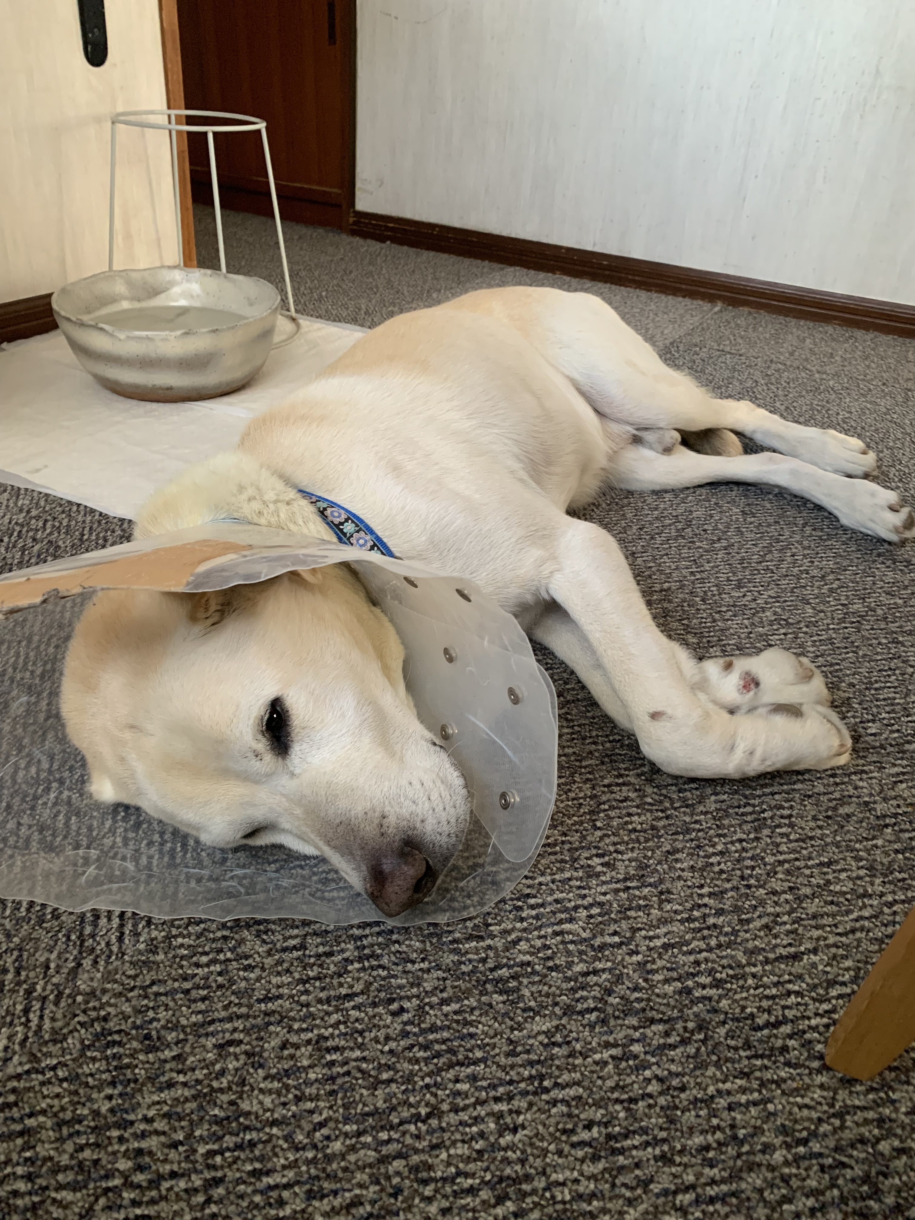 それに 傷舐め防止の為に エリカラ装着してるから 余計に人にぶつかる